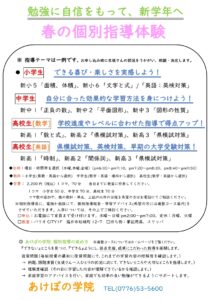 春の個別指導体験 実施中!